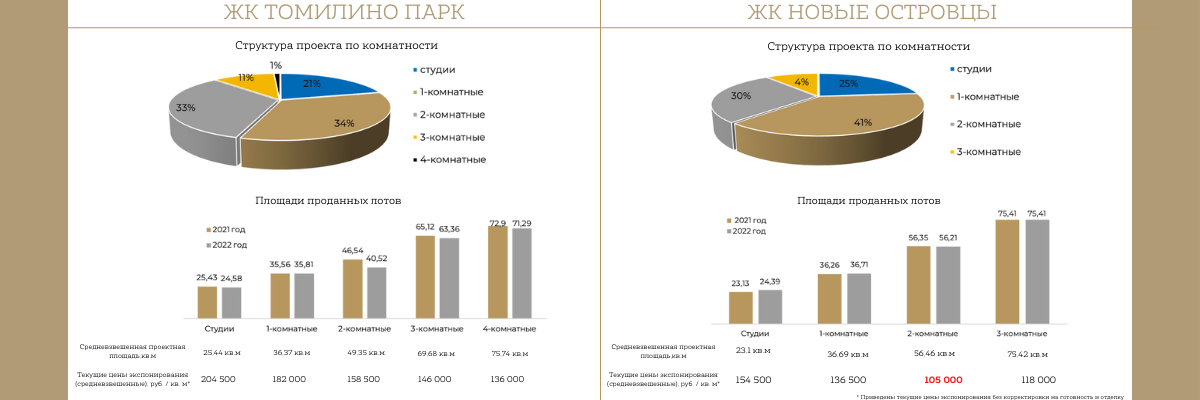 В рамках проведения исследования потребительских предпочтений для одного из наших клиентов, эксперты do A.S.A.P. проанализировали спрос на двухкомнатные квартиры в Люберцах. На примере жилых комплексов «Томилино парк» ГК Самолет и «Новые Островцы» RTD Group. Согласно исследованию, был выявлен интерес к более компактным планировкам двухкомнатных квартир: так, в 2022 г. средняя площадь реализованной 2-комнатной квартиры была на 18% меньше средней квартиры по проекту. При этом цена за кв. м в двухкомнатной квартире увеличивается на 13%-18% ввиду уменьшения показателя площади с максимального к минимальному. Наиболее успешным с точки зрения показателей реализации в локации на данный момент является проект ГК Самолет «Томилино парк», в связи с наличием широкого ассортимента планировок. В проекте RTD Group «Новые Островцы» основную долю остатков представляют собой крупногабаритные 2-комнатные квартиры, что вынудило застройщика снижать цены на данные лоты, ведь при примерном выравнивании цен