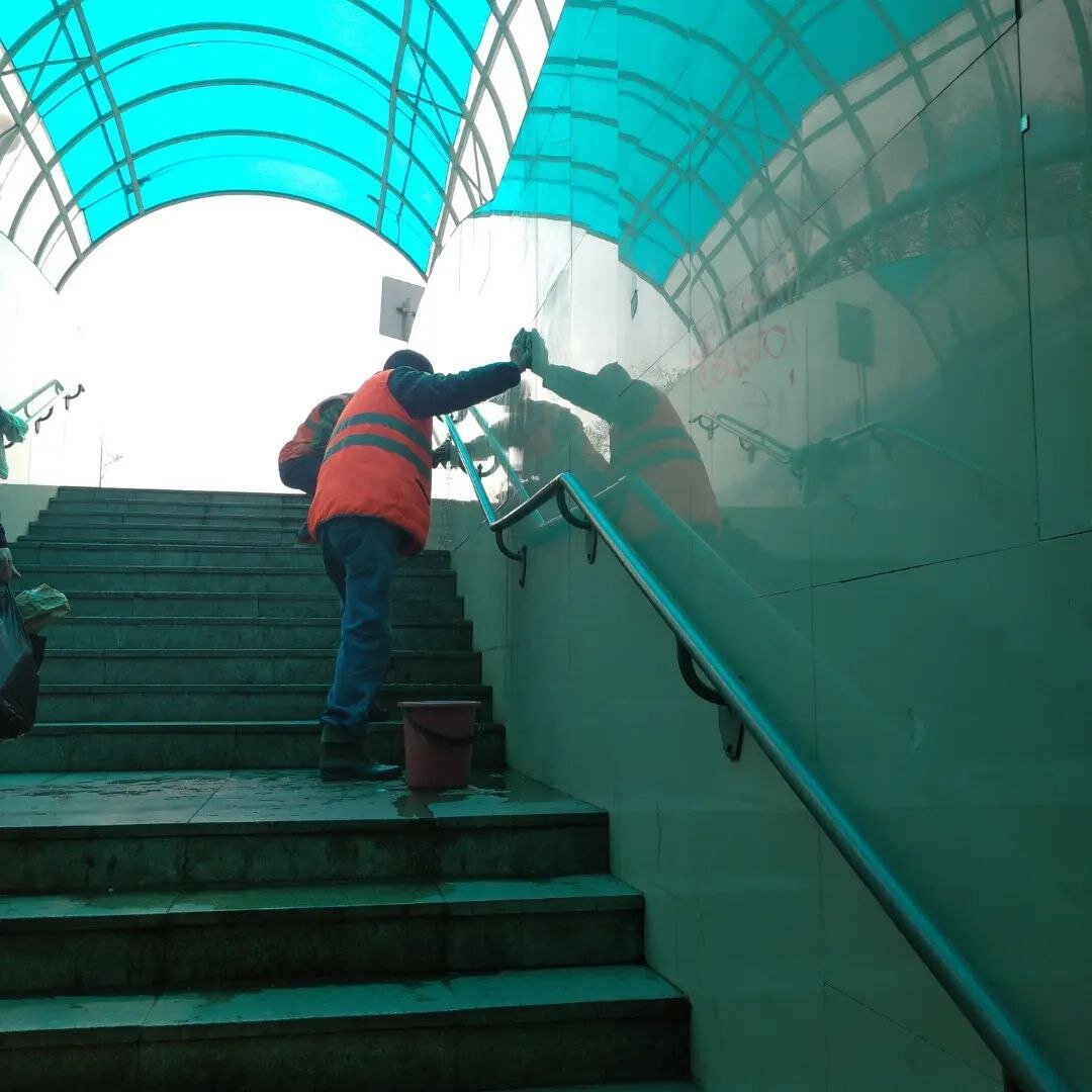 В Белогорске приводят в порядок подземный переход. Сотрудники «АвтоДорСферы» моют дорожное сооружение. — Подземный переход отмывают не только от зимней грязи, но и от "творчества" вандалов, — рассказала директор «АвтоДорСферы» Ольга Алексеева. — Мытьем стен, пола, лестниц и пандусов сегодня занималась бригада из 10 человек. Вчера отмыли часть стен, однако после обеда вандалы снова их изрисовали. Такое поведение несознательных граждан осложняет работу предприятия. В то время, когда рабочие могли бы выполнять другие обязанности, им приходится проделывать работу вновь. Сотрудниками предприятия также предстоит вымыть подземную и наружную части перехода. #белогорск #благоустройство #жкх