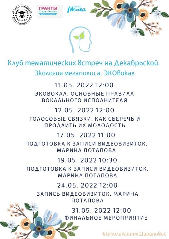 В мае заканчивается один из наших уникальных курсов, посвящённый Экологии мегаполиса. Наши участники будут учиться петь, работать в студии, а на финальном мероприятии, которое пройдёт 31 мая, им вручат сертификаты и записанные в студии видеовизитки.