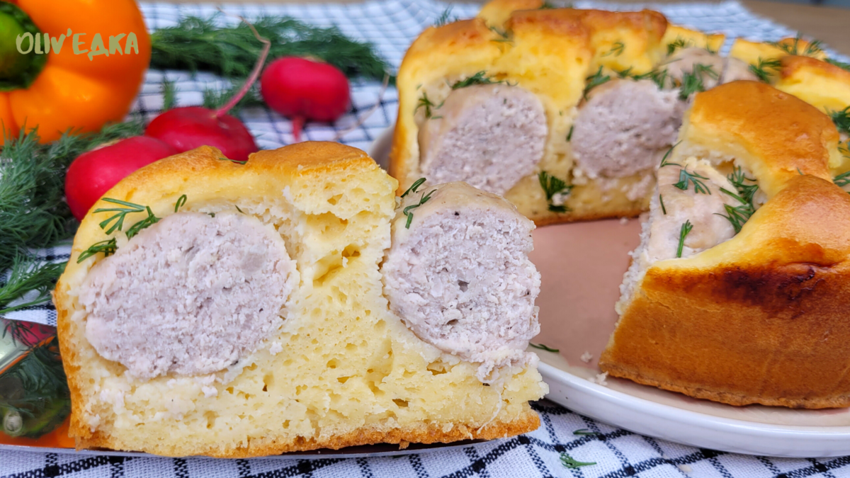 Сытный пирог с фрикадельками, тесто действительно минутное, без дрожжей, просто всё смешиваем и руками касаться не нужно