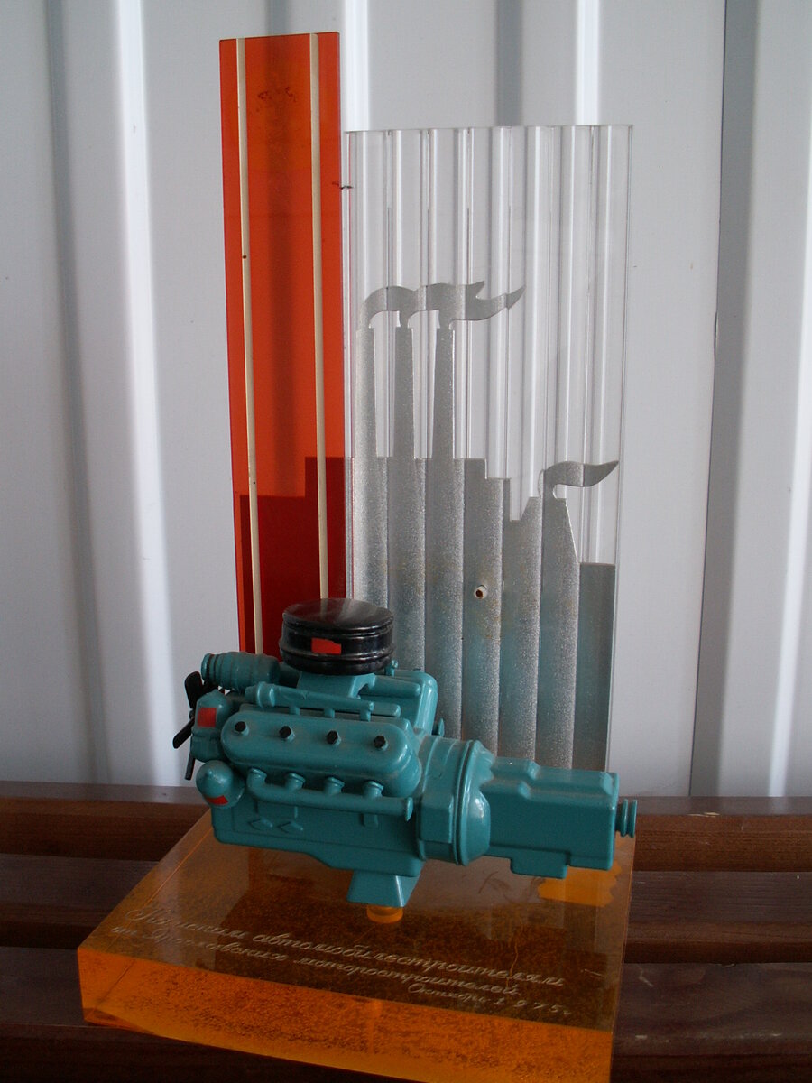 Хранится в Музее КАМАЗа вот такая копия двигателя Ярославского моторного завода. Памятный сувенир - двигатель ЯМЗ -238, разработанный конструкторами Ярославского моторного завода (ЯМЗ) был подарен 3 октября 1975 года, во время проведения II отчётно-выборной партийной конференции КАМАЗа. Представитель ЯМЗ торжественно вручил этот памятный сувенир партийным руководителям КАМАЗа в знак дружбы и сотрудничества между ЯМЗ и КАМАЗом. Внизу небольшая статья о ЯМЗ и продукции этого завода, опубликованная в журнале «За рулём», №9 за 1978 год.