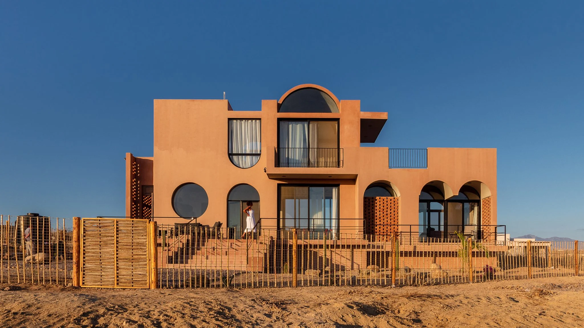 Мексиканская студия RED Arquitectos спроектировала дом из бетонных блоков, названный в честь мифической королевы воинов Дом площадью 200 квадратных метров расположен в небольшом мексиканском городке Тодос-Сантосе на побережье Тихого океана и принадлежит американской паре, которая приезжает сюда отдыхать. Проект дома, порученный студии RED Arquitectos, получил название Casa Calafia в честь королевы из местной легенды. Она на протяжении веков считалась покровителем региона и дала свое имя современному полуострову Калифорния. Образ сильной героини и морские пейзажи вдохновили архитекторов использовать в дизайне мягкие округлые линии. Дом, напоминающий монолитную скульптуру, построен из самого доступного в регионе материала — бетонных блоков. Все здание — внутри и снаружи — покрыто цементом землистых оттенков, благодаря чему оно сливается с окружающим ландшафтом. Постройку выдают только большие арочные окна, из которых открывает вид на океан. На нижнем этаже, окруженными патио, находятся д