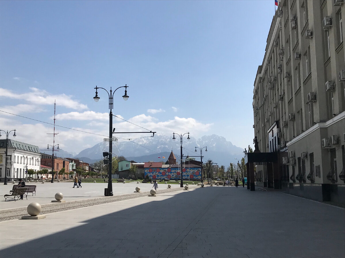 Всем добрый день) И так приехали мы во Владикавказ всего на 2 дня , первый день мы посвятили прогулке по городу. Все местные нам посоветовали посетить центр города, а именно проспект мира, ну мы туда и направились . Пока ехали по городу особо ничего примечательного не заметили , как и большинство Российских городов , обычные дома , частный сектор. Единственное отличие это то , что в дали виднеются горы , которыми окружён Владикавказ, и это смотрится конечно очень классно . Город небольшой , население 300 тыс человек , кто не знал , изначально его строили как крепость . Делится он на 2 условные части рекой Терек , с двух сторон набережные и сам центр . Здесь конечно очень красиво 😍 Очень много парковых зон , небольшой парк каруселей , городские площади . Именно сюда все приходят погулять и насладится видами . Поскольку были мы в конце апреля , то попали на цветение деревьев , от этого парки смотрелись ещё уютнее . Гуляя вдоль Терека трудно не заметить старую красивую Мечеть имени Мух