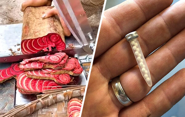 Вопрос: «Что это за штука с красной сердцевиной, которую нарезают? По звуку похоже на древесину, но это нарезается»