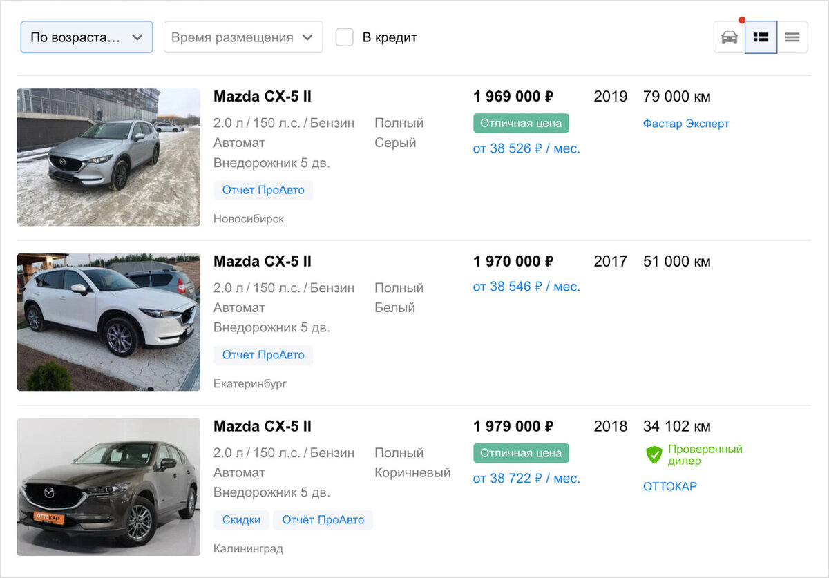 Принято считать, что главное при поиске надёжного и беспроблемного автомобиля – не гнаться за дешевизной. В случае со вторичным рынком этот постулат выражается в рекомендации просто отбрасывать предложения по самым низким ценам, заранее приготовив сумму побольше. Определённый смысл в этом есть. Большинство машин, которые становились героями нашей рубрики «Не бит, не крашен», пытались продать по максимально привлекательным ценам. Но где гарантия, что и среди более дорогих автомобилей не встретится проблемный вариант? Увы, их продавцы тоже способны и на недомолвки, и даже на обман. Проведём «следственный эксперимент» — поставим себя на место покупателя подержанного кроссовера Mazda CX-5. Заходим на Авто.ру, делаем запрос по довольно свежим машинам II поколения с полным приводом, отбрасываем редкие экземпляры с правым рулём. Сортируем список выданных объявлений по возрастанию цены и сразу переходим на вторую страницу — благо таких СХ-5 на Авто.ру продаётся почти две сотни штук. И даже из