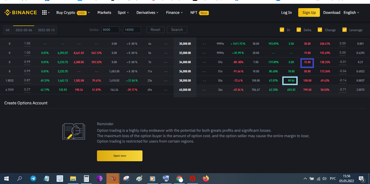Куплен пут 34000- 85 (покупаем голубой аск, пришлось зайти внутрь и посмотреть теоретическую цену и прибавить 3%).