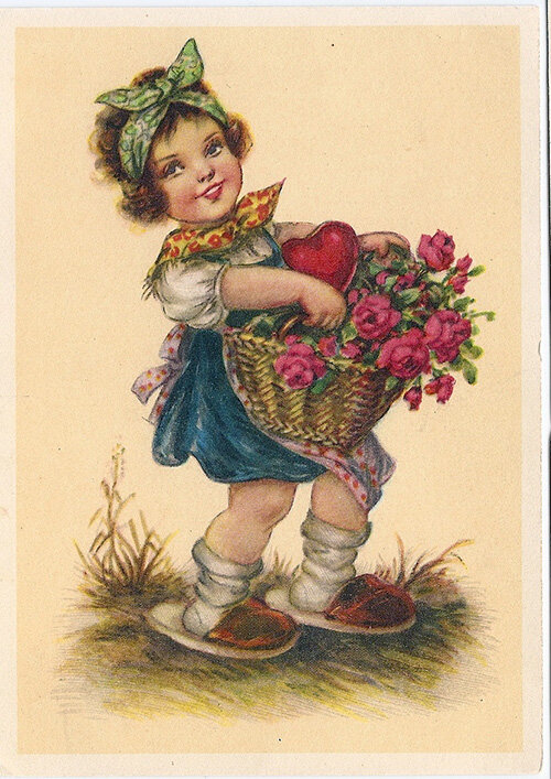 Приветствую читателей канала "Вечерний чай". На днях мы приобрели в коллекцию несколько открыток из ГДР, изданных в 50-е годы. У нас уже было несколько подобных открыток. Поэтому решили пополнить коллекцию. И цена, надо сказать, была более чем приемлемая - 10 и 40 рублей. Сказать по поводу этих открыток особо нечего, поэтому просто покажу картинки. Еще три открытки сюжетные: Эти открытки уже были в коллекции. Но мне кажется, они очень подходят к теме. И тоже изданы за границей. И еще одна из новых - скорее, взрослый сюжет, нарисован в сатирической стилистике. Спасибо, что заглянули на чашку "Вечернего чая". Подписывайтесь, если тоже любите рассматривать старые открытки.