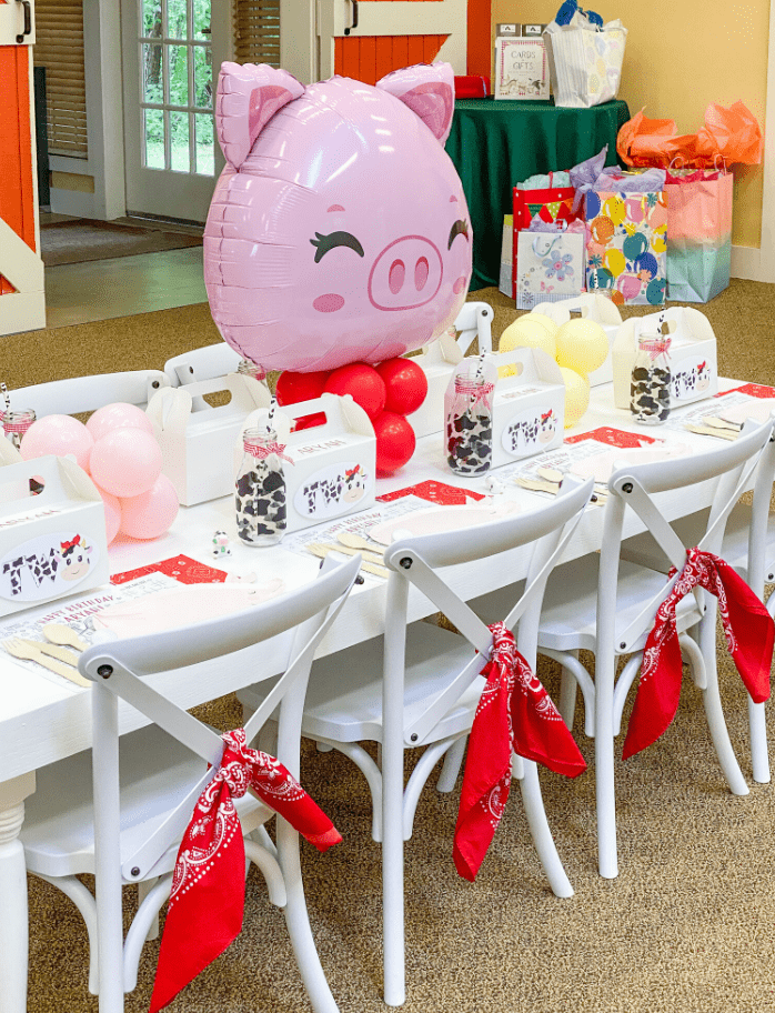 Если ваш ребенок обожает зверушек, то у нас есть очень классная тема для дня рождения — это ферма! Такой праздник может стать не только красивым, но и образовательным, если завязать все игры и активности на изучении обитателей фермы. А мы поможем вам подобрать декор для этого! Тема очень нравится малышам — нашей имениннице исполнилось два года, она обожает Свинку Пеппу, так что выбор был очевиден. Декораторы оформили помещение в желто-розовых тонах и добавили яркие красные акценты. А для веселья позвали аниматора-Пеппу! Сладкую зону оформили в стиле амбара, перед которым расставили чудесные угощения, украшенные зверушками. Посмотрите на эти чудесные кейк-попсы или милый тортик! С помощью циферки из воздушных шаров можно легко оживить пространство — она яркая и большая! Шариками можно заполнять и разные фигурки, например, сделать свинку или корову. Для украшения стола у дизайнера заказали кастомные салфеточки под приборы и коробочки для подарков. А стол, помимо посуды, украсили маленьк