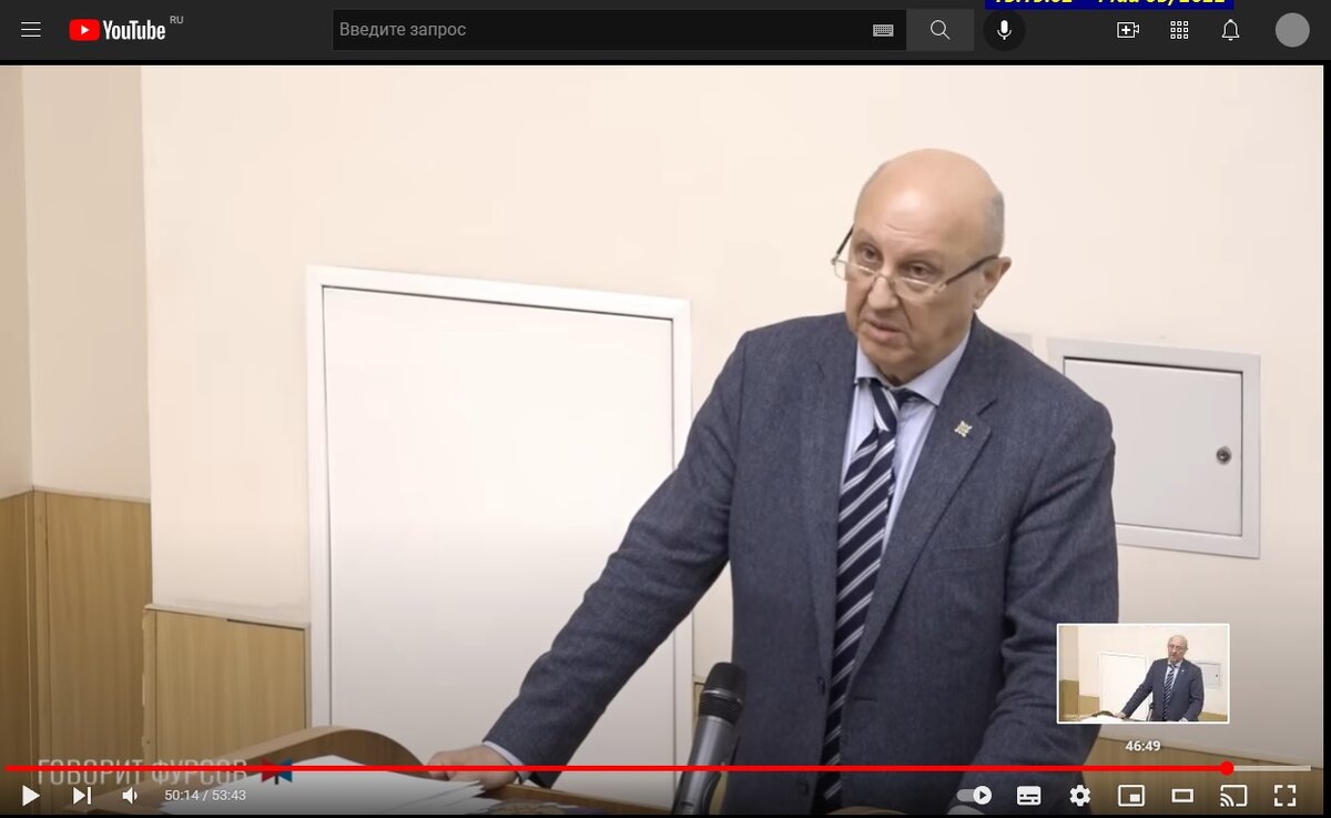 Фурсов А. И., директор Института системно-стратегического анализа, выступил на тему «Будущее, которое уже наступило» (смотри источник). Лектор предложил многофакторную модель исторического развития, в которой действуют различные общественный объединения от отдельных семейных кланов до наций и государств. Главным фактором современности он назвал борьбу финансово промышленных групп, в которой победит сильнейшая. Но лектор оставил себе запасной выход, утверждая, что все решает борьба, а значит может победить и слабейшая группа. Таково будущее, которое наступило – борьба с неизвестным исходом. Банальный и очевидный для вех людей вывод. Иное будущее предсказывает теория госкапитализма Маркса. Госкапитализм является высшей стадией на этапе массового товарного производства, которое возникает после буржуазных революций. Этап массового товарного производства, проходит три ступени: формация буржуазного семейного производства; капиталистическая формация, основанная на наемном труде, которая вмес