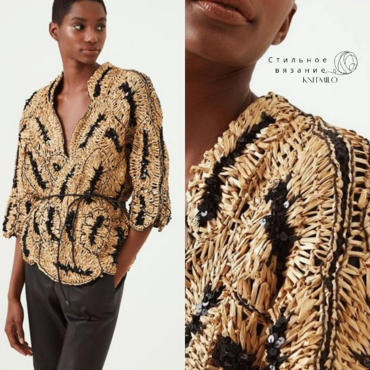 Завершающий пост на тему схем и бесплатных мастер-классов к моделям Брунелло Кучинелли. Внизу странички вы найдете ссылки на предыдущие три части подборки. А начать я хочу сегодня с изумительного, необычного изделия - жакета из рафии с пайетками. Самое удивительное, что наши мастерицы уже связали эту красоту и сняли краткий мастер-класс, ссылкой на который я с удовольствием поделюсь с вами. Итак краткий мастер-класс по вязанию жакета из рафии по мотивам модели Брунелло Кучинелли от Wooly Yarn. Джемпер полуанглийской резинкой. В составе оригинального изделия кашемир и шелк. Схема узора Для достижения имеющегося эффекта модели чередуйте две разные по фактуре пряжи, но имеющие примерно одну плотность. Нити меняйте каждые 2 ряда узора. Как видно на фото, одна из нитей мягкая, шерстяная, вторая фактурная, с блеском. Джемпер с оригинальными косами и спущенными петлями. Схема узора от Дарьи "Вязунчик-вяжем вместе" и ее комментарий к его исполнению: "Ширина раппорта узора — 32 петли. Высо