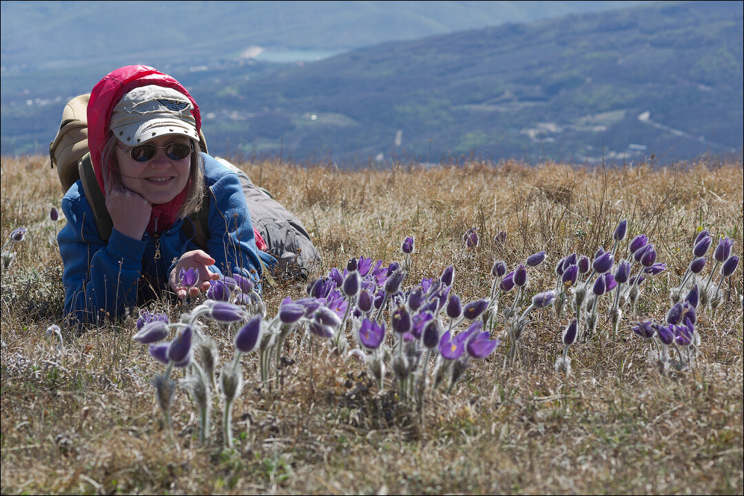 Честно пытаемся продолжить путь по плато. И тут же обнаруживаем, что сон-травы здесь не просто много. Великое множество! Целые поляны и поляны, и каждый цветок не похож на другой, и мы, сдаваясь, уже откровенно ложимся на землю, презрев опасность встречи с клещами, и ползаем от цветка к цветку. Полный восторг!