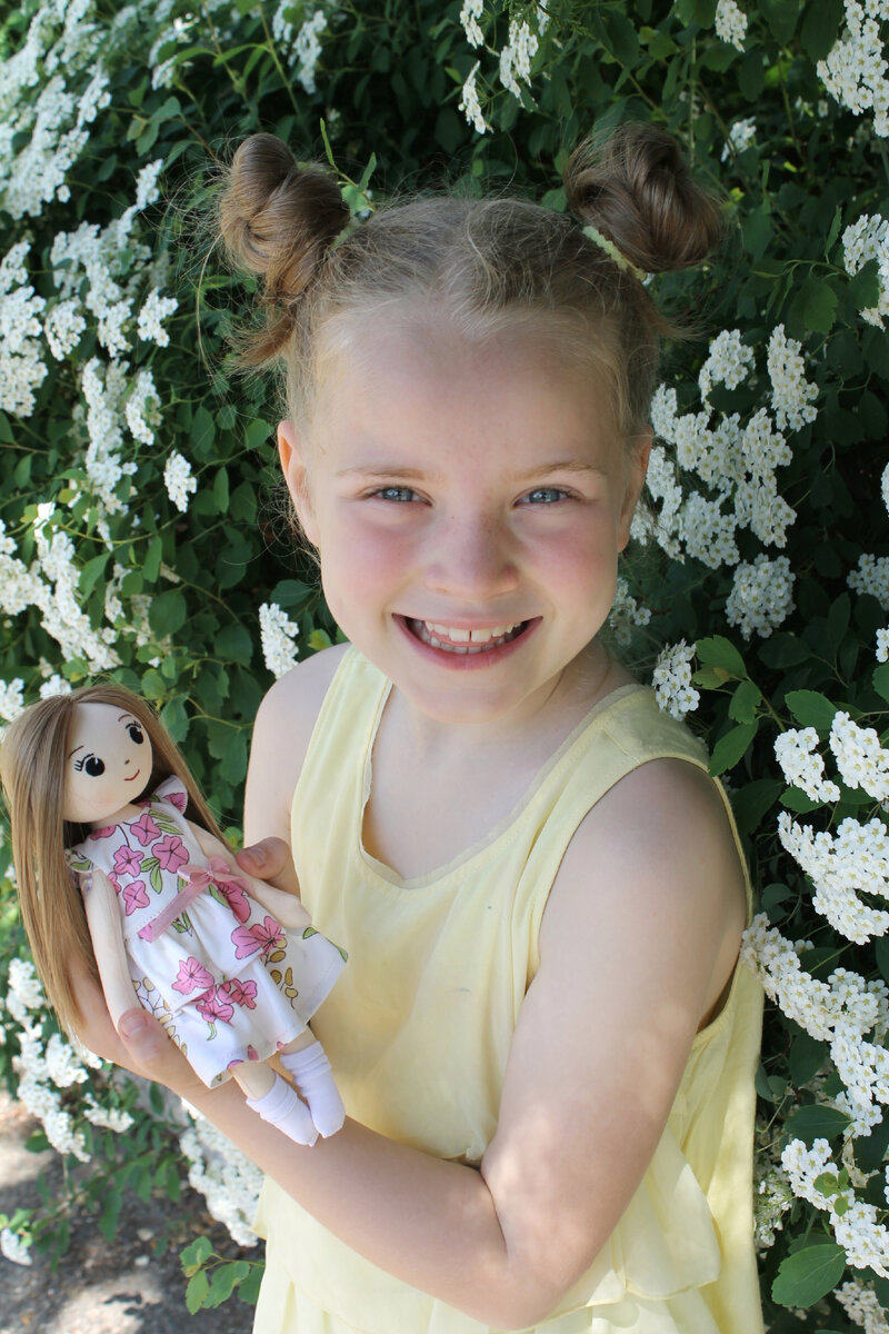 🔅Когда в нашей мастерской появилась задумка шить игровые комплекты, один из параметров, который необходимо было учесть, это размеры куколки. Игрушка должна была быть не большая и лёгкая (чтобы она была пропорциональна ребёнку), но и не совсем маленькая (чтобы совсем маленькие девочки могли с лёгкостью справляться с кукольной одеждой). 🔅Так, опытным путём, мы решили что рост нашей куколки будет 24 см. С ней очень комфортно играть, спать и брать с собой в путешествие. 🔅Спустя несколько лет и почти тысячу кукольных наборов, я с уверенностью могу сказать, что наша куколка идеальна для детских ладошек и самых нежных обнимашек 🤗