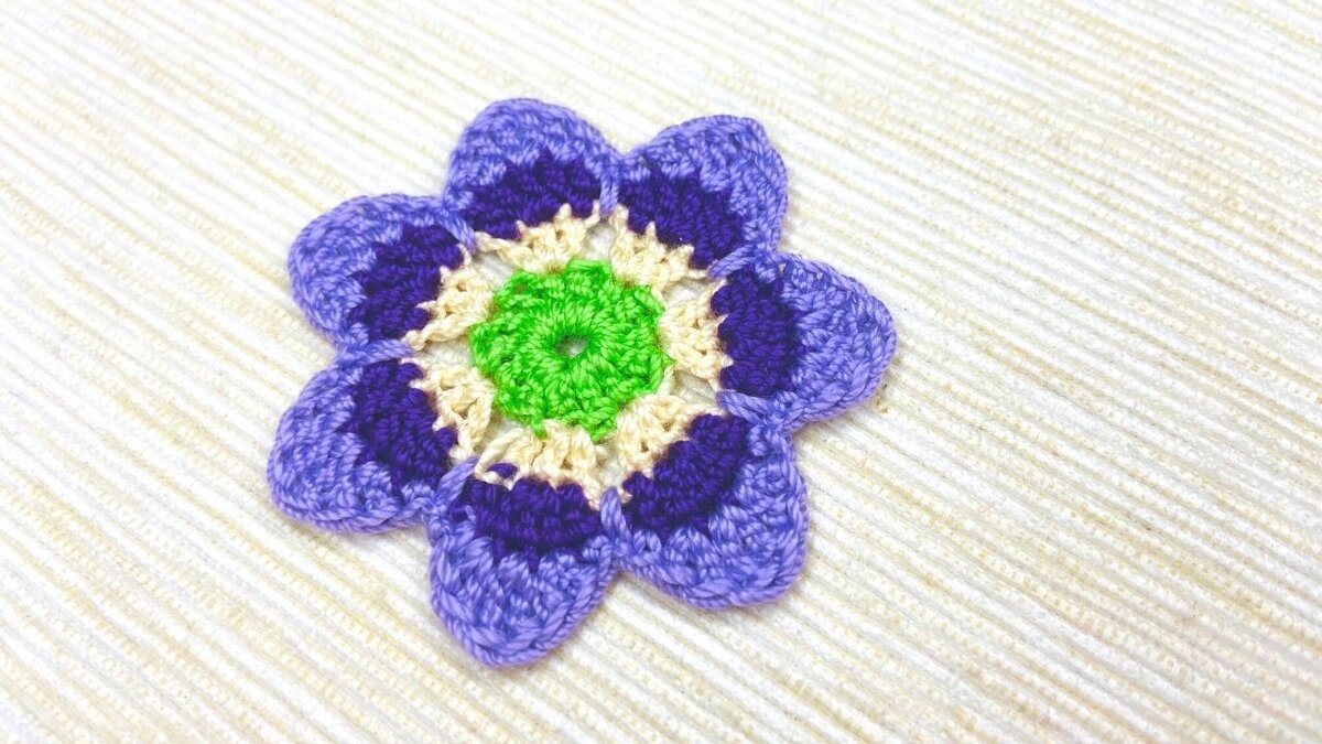 Вязаный крючком цветок с 7 лепестками. Мастер-класс с пошаговыми фотографиями.