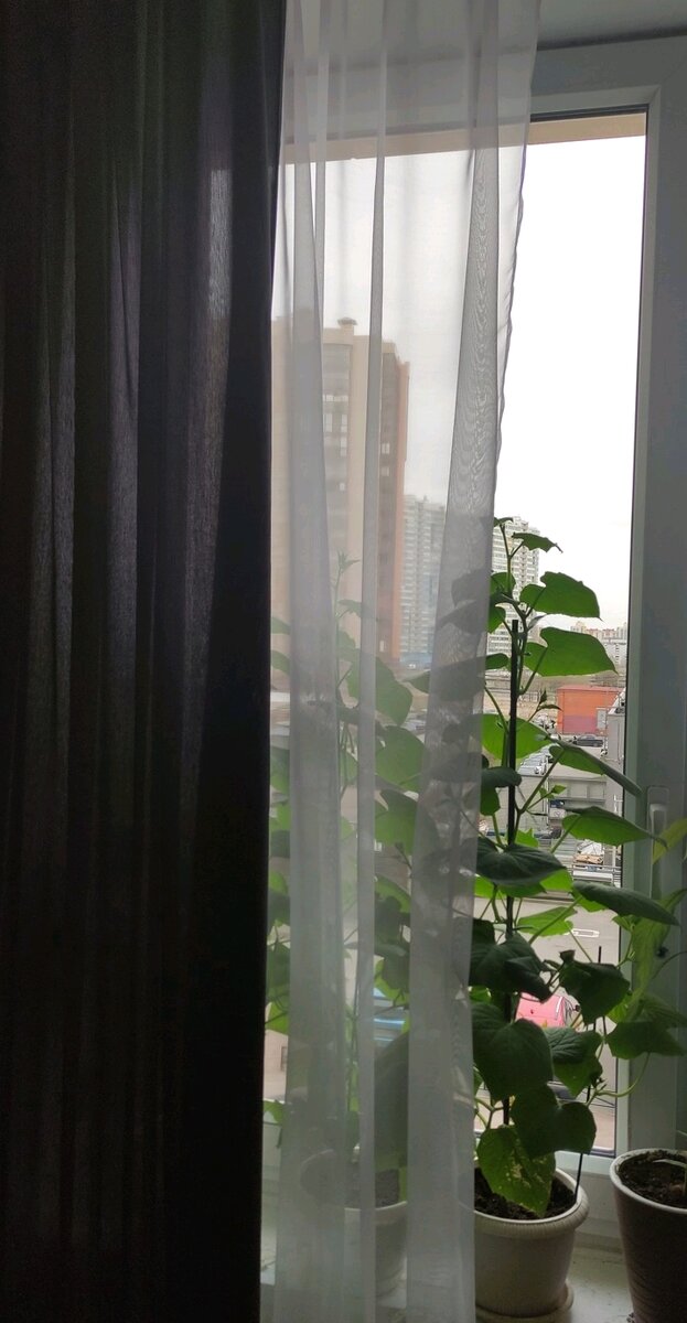 5 мая, 38 дней огурцам "Трюкач" Растут в 2,6 л горшках. При посадке в грунт добавила примерно 30%биогумуса. Так же,через день поливаю слабым раствором биогумуса. Вообще полив ежедневный, за сутки почва практически сухая.Особенно в солнечную погоду. Полив чередую : день водой,день раствором. В дальнейшем планирую ежедневно поливать раствором биогумуса, когда еде больше разрастутся. Хотя,куда больше)) Окна почти не видно. Верхушки прищипнула,если это так называется) . Так же пасынки прищипываю.Даю немного подрасти и обрываю. Усы тоже обрываю . Где-то советуют обрывать , особенно при комнатном выращивание. Если у кого-то есть советы ,делитесь!