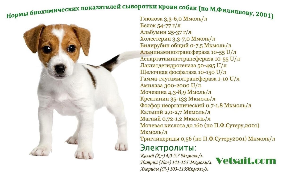 БИОХИМИЯ КРОВИ - НОРМЫ Нормы биохимических показателей сыворотки крови собак (по М.Филиппову, 2001)