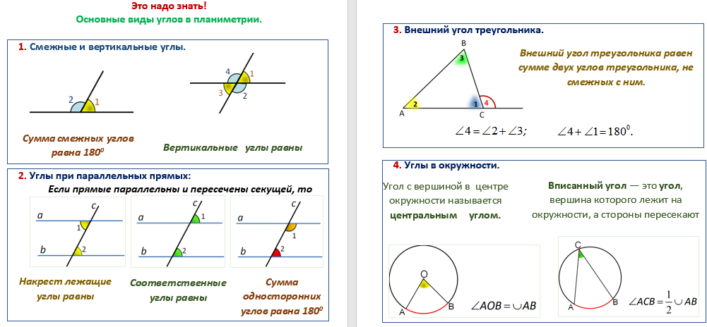 Готовимся к ЕГЭ и ОГЭ. Основные виды углов в планиметрии.