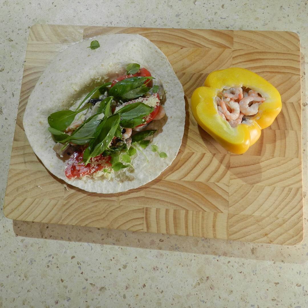 Средиземноморские роллы с креветками и фаршированный перец с креветками