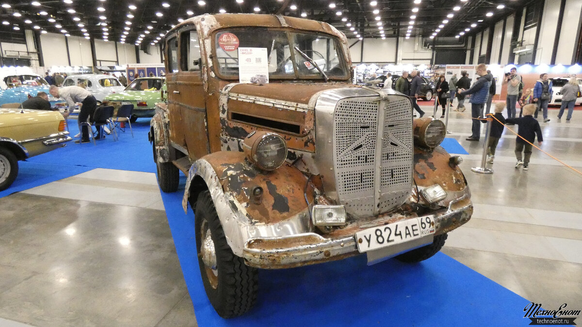 На «Олдтаймер-Галерее» попадались идеально отреставрированные экспонаты, попадались те, которых не касалась ласковая рука реставраторов, и был ещё Федя. Opel 6, вроде как 1939 года выпуска. Не стоит к этому экспонату подходить как ко всем другим, это «Франкенштейн» из проекта «Независимый эксперт», поэтому он стоял на выставке, как говорится, «для тех, кто в теме». Приобрели его совсем недавно в Тверской области, в далеко не самом лучшем состоянии. К сожалению, эти серии с Федей мы не смотрели, поэтому не будем про него рассказывать какие-то прочие подробности. Нужно самим посмотреть, а потом понять и простить…