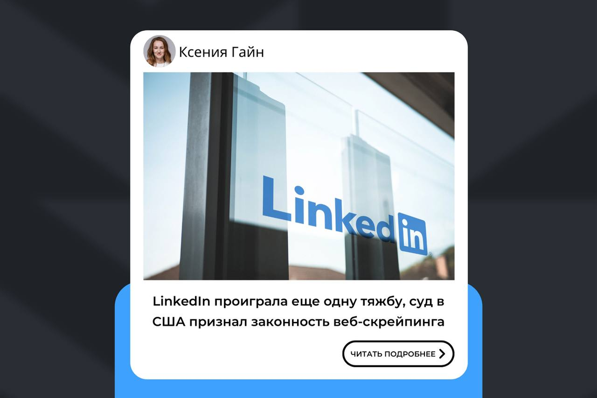 Апелляционный суд девятого округа США признал законность веб-скрейпинга. Для тех кто не знает веб-скрейпинг — это сбор данных со страниц веб-ресурсов. Суд постановил, что соцсеть LinkedIn не имеет права запрещать компании hiQ Labs собирать публичные данные о ее пользователях. Решение Апелляционного суда девятого округа США стало последним в длительной судебной тяжбе, которую четвертый год ведет LinkedIn с целью остановить конкурирующую компанию от веб-скрейпинга личной информации из публичных профилей пользователей этой соцсети. В прошлом году дело дошло до Верховного суда США, но было возвращено для повторного рассмотрения дела апелляционным судом. Соцсеть проиграла первый суд в 2019 году, а после и апелляцию. Компания не смирилась с решением и обратилась в Верховный суд США, который отправил дело на пересмотр обратно в апелляционный суд. По итогам последнего на сегодняшний день заседания суд решил, что истец не может ссылаться на CFAA, так как этот закон применяется, только если че