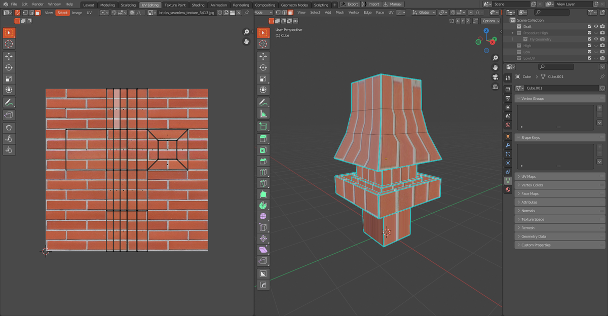 Blender растет огромными темпами, и все больше людей начинают интересоваться 3D графикой, мне бы хотелось научить некоторым трюкам, тех кто только начал постигать азы, этой интереснейшей сферы. И для этого я подготовил 5 лайфхаков 1. UV развертка в один клик Многие новички почему-то бояться UV, хотя это одно из самых несложных технических этапов во всей работе над моделью. Страх скорее всего вызван незнанием, и в следующих статьях я обязательно объясню все тонкости этого дела. А пока чтобы помочь вам в начинаниях, покажу вам волшебную кнопочку Заходим в режим редактирования UV и видим, что все не очень хорошо. Чтобы blender сгенерировал нам развертку, нужно выбрать нашу модель целиком, нажать на U и выбрать Cube Projection (так же там существуют ещё Cylinder и Sphere Projection, они могут помочь при развертки фигур, которые соответствуют их названию, но чаще всего Cube Projection справляется и без них, просто поэкспериментируйте) В меню последнего действия(открывается автоматически и