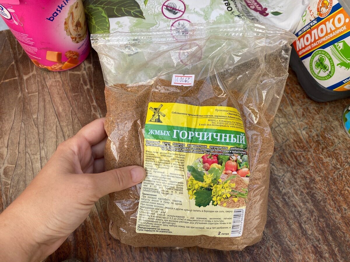 Вещества в жмыхе горчицы отпугивают вредных насекомых, грызунов, не дают развиваться многим болезням растений. Так называемое биотопливо прогоняет проволочника и слизней, долгоносиков и нематод. Как говорят садоводы, жмых помогает бороться с луковичной и морковной мухой, очищает почву от корневых гнилей, а также тормозит развитие фитофторы!
