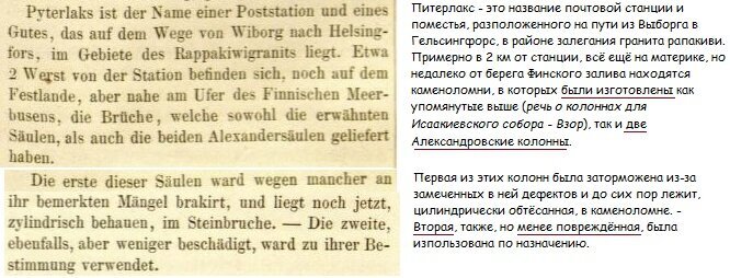 Может ли это быть вторая колонна, про которую писал Гельмерсен? «Его» колонна лежала в Пютерлаксе в каменоломне «до сих пор» — т.е. до 1862 года. Представить, что после ее привезли на Дворцовую, чтобы закопать... попахивает бредом.