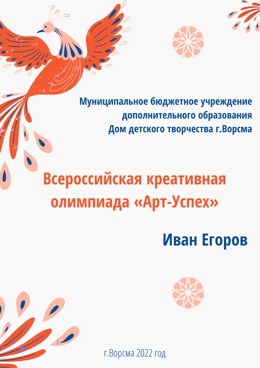 Егоров Иван Александрович МБУ ДО ДДТ г.Ворсма (МАОУ СШ № 1 г.Ворсма, 8 класс) Книжная полка Стихотворение "Культурное наследие" Культурное наследие…а что это, друзья? В чем важность сохранения? Отвечу всем Вам я. В нем ценность сохранения всей жизни бытия, На протяжении столетий, историю храня. Культура нашей Родины сегодня очень значима: И памятники зодчеству, ландшафт, мемориал, И промысел народа, фольклор и театрал, Где сила и величие народа общезначима. Культурного наследия мы память сохраним, И, чтив его наследие, в века передадим. Младое поколение, мечтай, твори, дерзай И ценность поколений всегда преумножай! Авторская книга