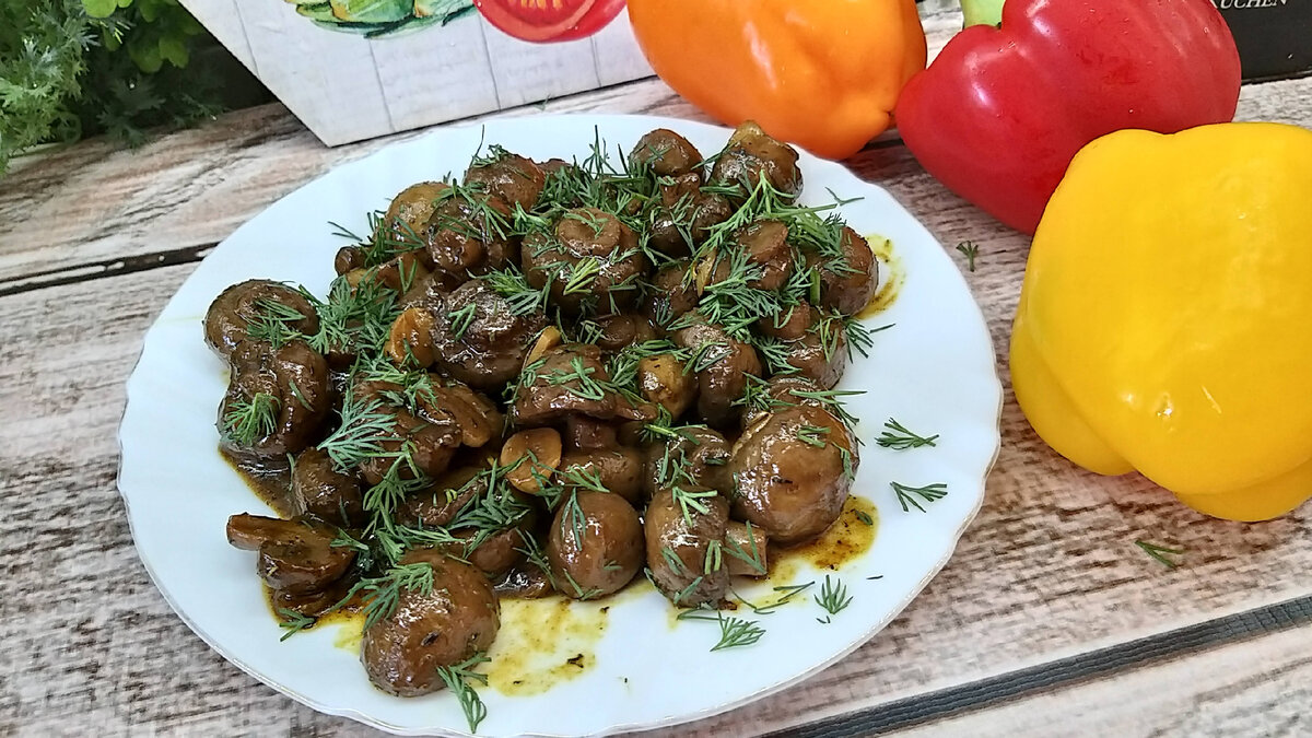 📖Ингредиенты: Шампиньоны - 500 гр. Соевый соус - 3 ст.л. Мёд - 1 ст.л. Лимонный сок - 2 ст.л. Кориандр - 0.5 ч.л. Прованские травы - 0.5 ч.л. Имбирь - 0.5 ч.л. Карри - 0.5 ч.л. Чеснок - 4-5 зб. Привет друзья добро пожаловать на мой канал! Скажите а любители в игре гриб так как люблю их я? Сегодня хочу поделиться с вами рецептом очень вкусных и быстрых шампиньонов на приготовление уйдет всего лишь 15 минут вашего времени и вкусные грибочки у вас на столе. Для приготовления нам понадобится 500 грамм шампиньонов чем мельче грибы тем лучше. Идем в магазин и берем самые мелкие какие можем найти но если нет мелкий грибов то их придётся разрезать на половинки или на четвертинки. Чеснок 3-4 зубчика нарезаем пластинками в разогретую сковороду вливаем две три столовые ложки растительного масла, пол чайной ложки кориандра, пол чайной ложки прованских трав, пол чайной ложки имбиря, пол чайной ложки корицы, 2 столовые ложки лимонного сока, 3 столовые ложки соевого соуса, нарезанный чесн