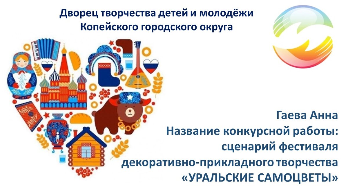 Марья. Здравствуйте, дорогие гости! Добро пожаловать на городской фестиваль декоративно-прикладного творчества «Уральские самоцветы». Иван. С приветственным словом ко всем красным девицам и добрым молодцам обращается директор Дворца творчества детей и молодежи.