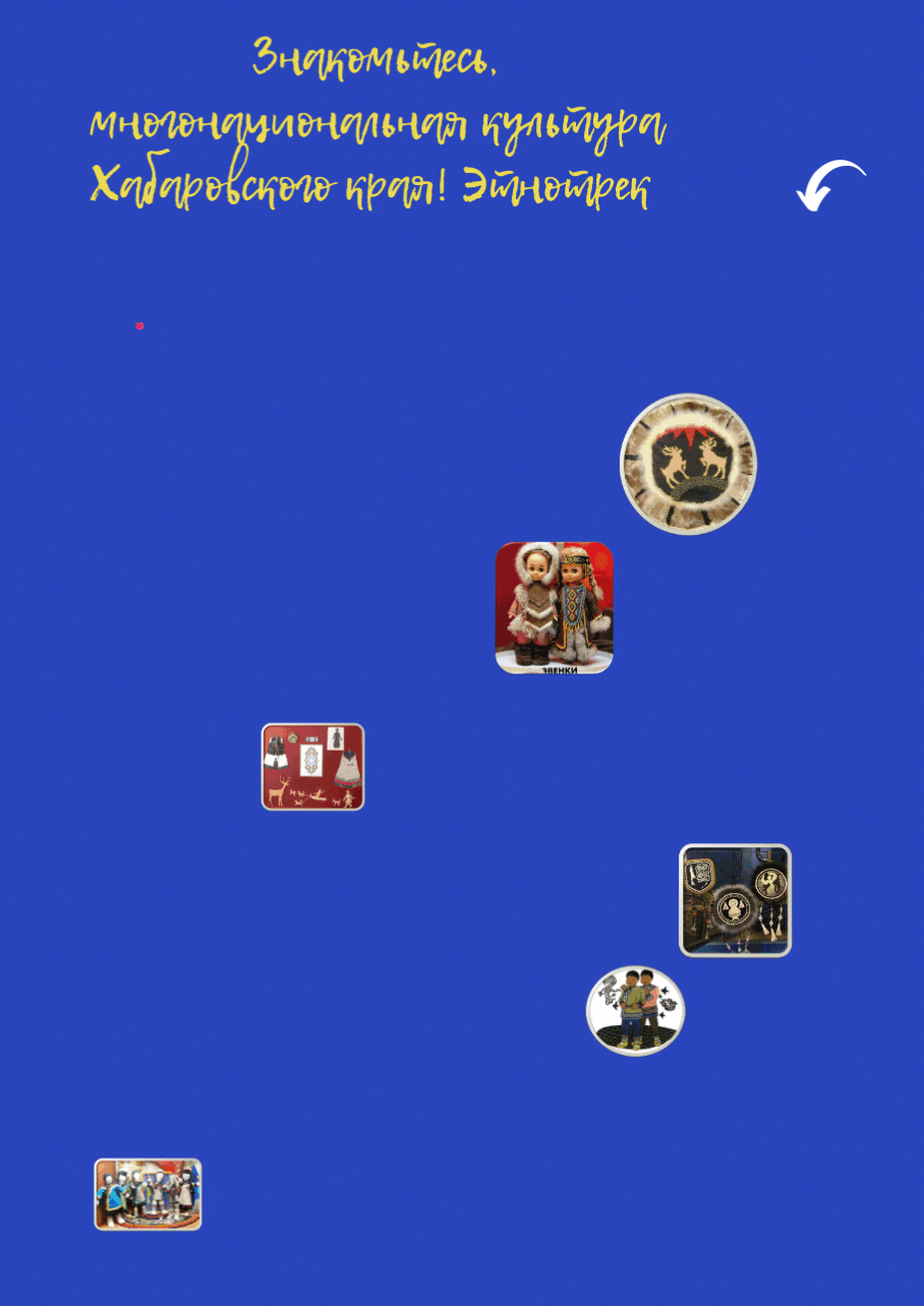 На рекламном плакате изображены карта коренных народов Дальнего Востока,проживающих на территории Хабаровского края и художественно-прикладное искусство народов Хабаровского края.Плакат выполнил Кряжев Артём, 12 лет. Номинация "Арт-директор"