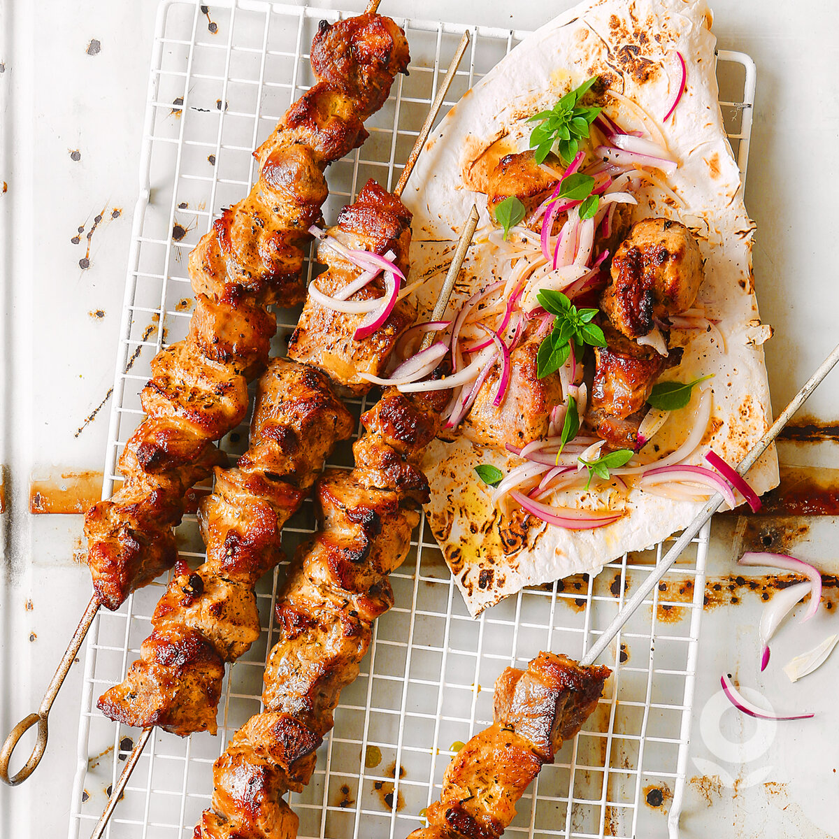 Правильно приготовить шашлык – настоящее искусство. И каждый творец здесь всегда сталкивается с нелёгким выбором: мясо это будет или рыба, замариновать самому или довериться профессионалам, а ещё способ приготовления нужно выбрать… Специально для вас – 3 несложных рецепта идеального шашлыка от «Ленты». Шашлык свиной с маринованным луком Ингредиенты 4 порции Лук репчатый - 1 шт. Свинина (мякоть) - 600 г Приправа для свинины на углях - 2 ст. л. Йогурт натуральный - 100 г Белое сухое вино - 2 ст. л. Растительное масло - 2 ст. л. Соль морская среднего помола - 1 ч. л. Лук красный - 1 шт. Лук белый - 1 шт. Уксус винный красный - 1 ч. л. Сахарный песок - 0.5 ч. л. Соль - 0.25 ч. л. Перец черный свежемолотый - 0.25 ч. л. Лаваш тонкий - 1 шт. Кинза - 4 веточки Базилик зеленый - 4 веточки Как приготовить Шаг 1 Репчатый лук очистите и нарежьте толстыми полукольцами. Сложите в миску, посолите и помните руками, чтобы выделился сок. Мясо нарежьте небольшими кусочками, переложите в миску с луком. Д