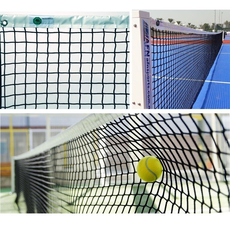Цвет сетки должен быть черным, допускаются другие темные оттенки (синий, зеленый, темно-коричневый). Сквозь ячейки не должен пролетать мяч. В верхней части располагается белая полоса ткани шириной 5–6,35 см. Натягивается она, чтобы закрыть расстояние между двумя столбами полностью, не выступать, не провисать по краям и центру. Чтобы не провисала в центре — используется металлический трос и белый ремень. С их помощью регулируется и центральная высота, которая должна составлять ровно 91,4 см. Столбы креплений сетки, не должны быть в диаметре больше 15 см, а по высоте — выступать над сеткой больше чем на 2,5 см. Натяжение должно быть достаточным, чтобы края или середина не провисали, не раскачивались ветром.