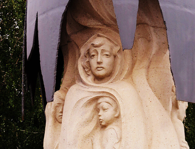 Во время прогулок по городу мы также были на аллее героев, на площади павших бойцов и увидели много памятников, посвященных военным событиям. Особенно запал в душу памятник мирным жителям Сталинграда в виде бомбы, нависшей над женщиной с детьми. В августе 1942 года город бомбили в течении нескольких дней. И только за первый день погибло более 40 000 людей. Когда я увидела лицо этой женщины, ее отчаяние и глубокую скорбь, я просто замерла. Если представить, что происходило в этих местах 80 лет назад, что пережили там люди, становится очень страшно. Несмотря на то, что город был сильно разрушен и разорен, всё-таки сохранились постройки 19 века. Например, гуляя по набережной мы наткнулись на первую царицынскую водокачку. Это был, после Санкт-Петербурга, второй водопровод в России. Также около парка находится первая в городе пожарная каланча. Она сохранилась лучше, чем водокачка. Чтобы подняться до дозорной площадки, где находился наблюдатель, нужно пройти 207 ступенек. Раньше на нижних эт
