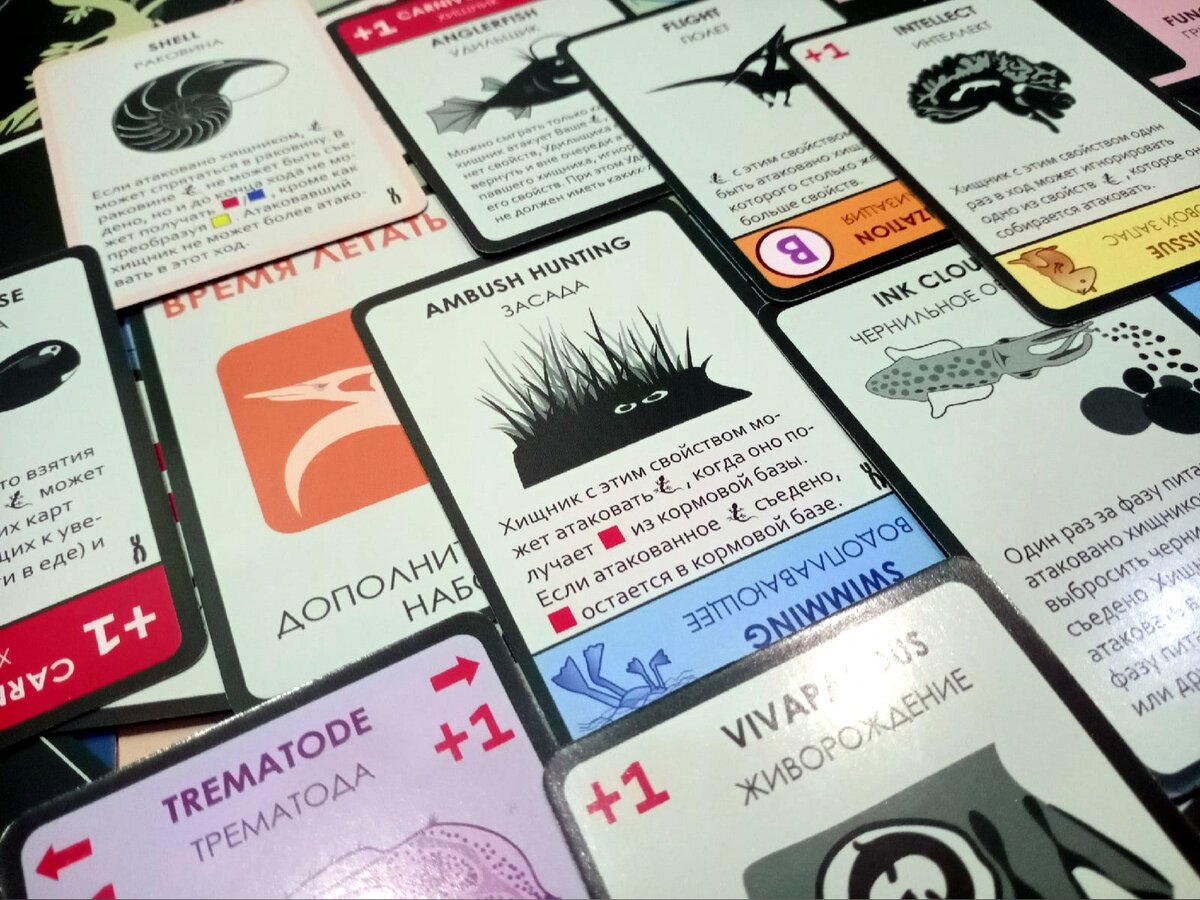 Доброго времени суток, дамы и господа! Новая неделя — новая настолка. Если точнее, то сегодня охвачу своим вниманием 2,5 дополнения к той самой «Эволюции», а вот почему именно 2,5, вы скоро узнаете. Поехали! :-) P.S. Статью про базовую настольную «Эволюцию» можно найти здесь! :-) «Время летать»: Не мыслю базу без этого допа Напомню, что изначально покупал сразу «Подарочный набор», чтобы прям наверняка! И в процессе изучения правил мы определились, что не будем изучать «Эволюцию» поэтапно, дополнение за дополнением, а сразу же охватим своим вниманием и базу, и «Время летать». Если в базе мы учили тварюшек плавать и быть большими, то здесь наши подопечные учатся летать. Плюс! Доп не меняет геймплей, но разнообразит его, вводя пак классных карт. На них я бы хотел остановиться в отдельном выпуске, однако уже не представляю «Эволюцию» без коварного «Удильщика» и прочих перков, усложняющих / облегчающих жизнь соседям за столиком. «Континенты»: Как раз та самая половина допа Короче. Вчера фот