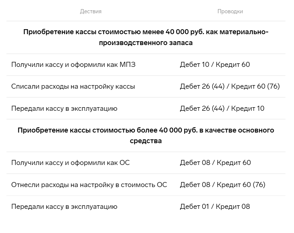 Шпаргалка: бухгалтерские проводки при покупке онлайн-кассы