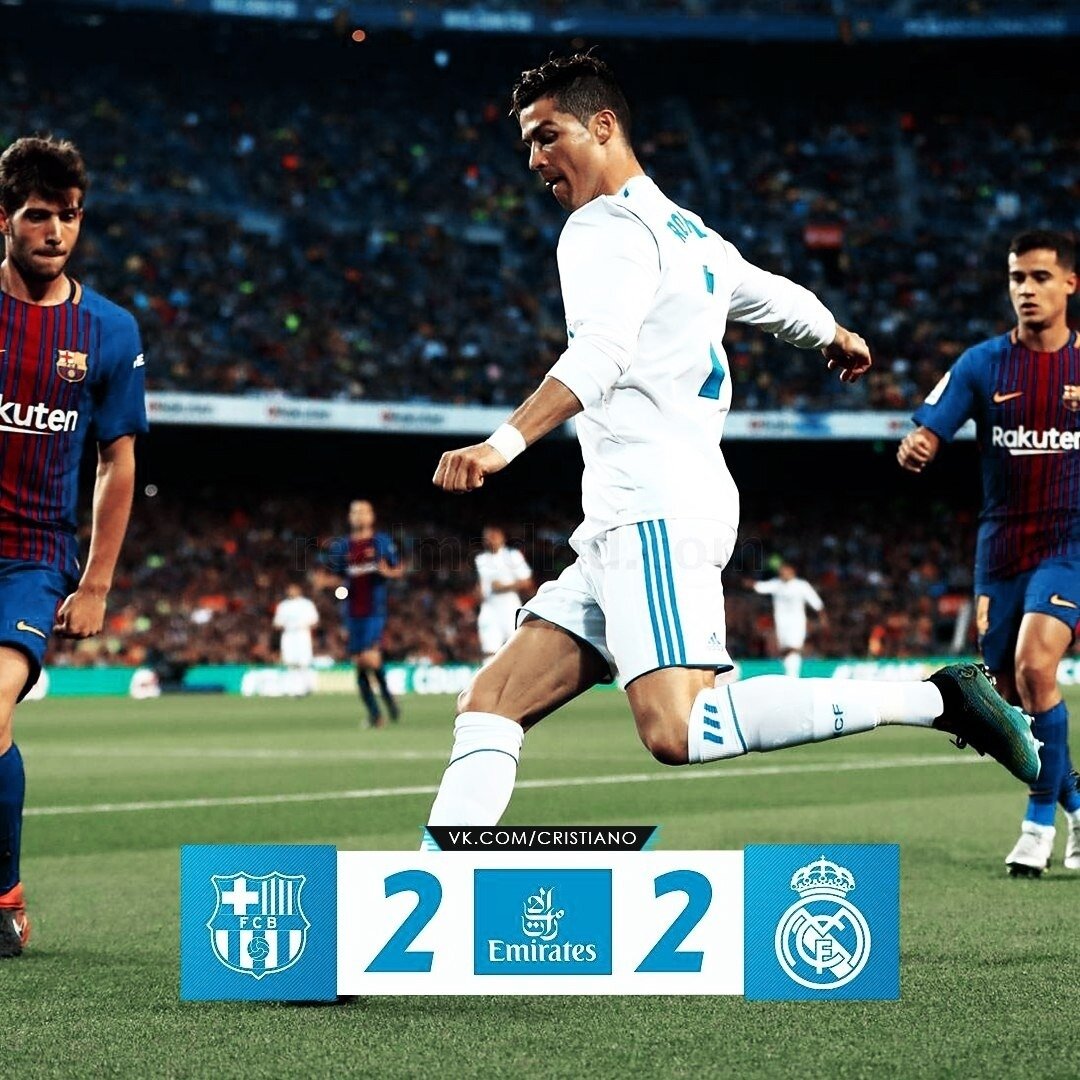 Ровно 4 года назад Криштиану Роналду в последний раз принял участие в Эль Класико и поразил ворота «Барселоны» на «Камп Ноу». Благодаря этому мячу, Криштиану повторил рекорд Альфредо Ди Стефано и стал лучшим бомбардиром «Реала» в истории противостояний с «сине-гранатовыми» – оба отличились по 18 раз. Игра завершилась со счетом 2-2