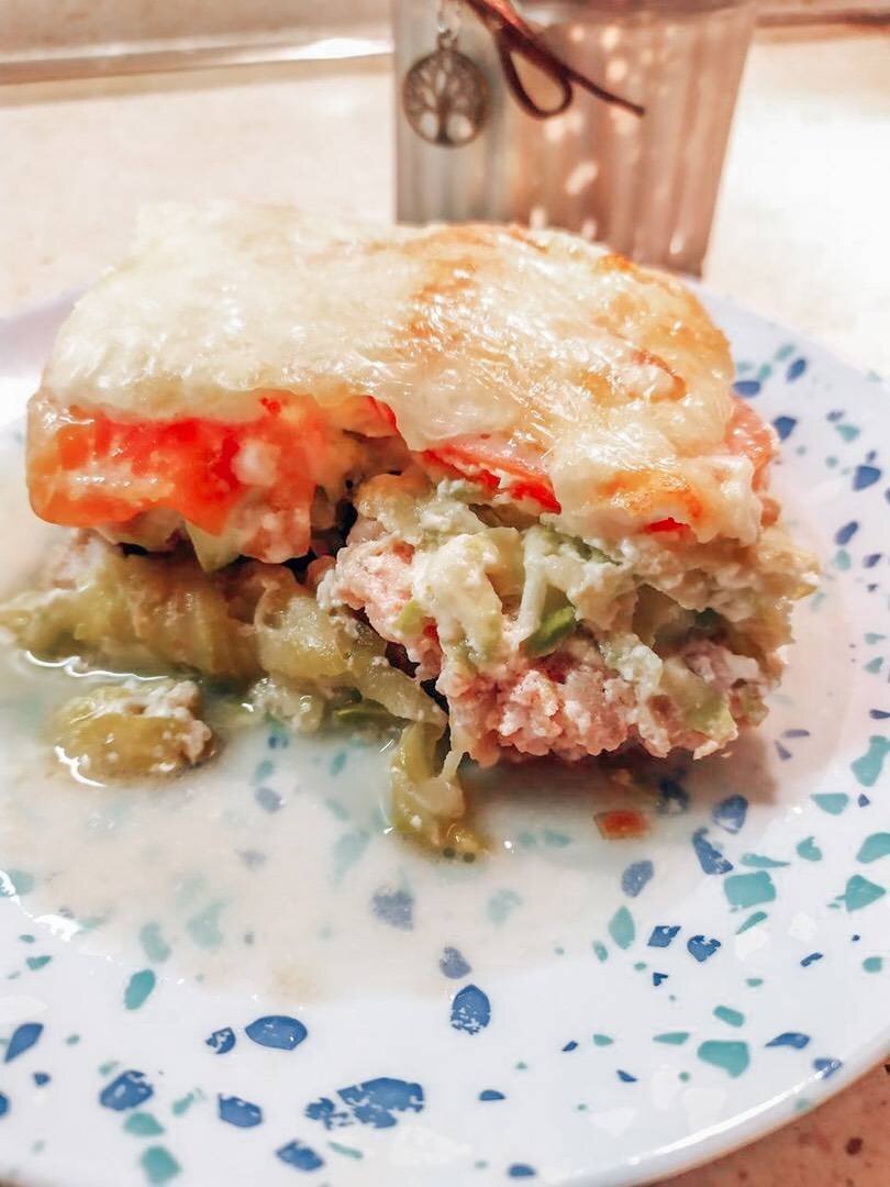 Вкуснейшая вариация на тему сочетания овощей с фаршем. Кажется, что продуктов набралось много, но сейчас увидите, что сделать запеканку из кабачков с фаршем проще простого #запеканка #кабачковаязапеканка #запеканкаизкабачка #запеканкасфаршем #готовимвместе Ингредиенты: кабачков, фарша, лука, помидоров, яиц, томатного соуса, сыра, растительного масла, сметаны, соль, перец Способ приготовления: Подготовьте все необходимое. На масле поджарим мелко нарезанный лук, как только посветлел - бросаем в фарш. К фаршу добавляем томатный соус, соль, перец. Перемешиваем. Яйца взбиваем и вводим в них сметану. Кабачки трем на крупной тёрке, отжимаем лишний сок, солим. Форму смазываем маслом и выкладываем половину кабачков. Далее слой фарша и наверх снова кабачки. Заливаем запеканку яйцами со сметаной. Сверху выкладываем кружочки помидоров и посыпаем их натертым сыром. Отправляем в духовку на 40 минут при 180 градусах. Готово!