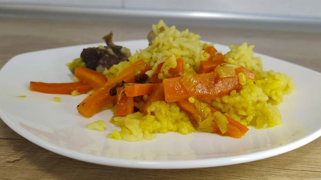 Как приготовить Очень вкусный рассыпчатый плов из утки в мультиварке? Легко и быстро! Мясо утки - просто тает. Рис рассыпчатый и очень пряный. Наслаждение в каждой порции. Ингредиенты: Утки, Риса, Лука, Моркови, чеснока, сушеного барбариса, куркумы, зиры (кумин), молотого черного перца, лавровый лист Способ приготовления: Первым делом подготавливаем все необходимые ингредиенты. Тщательно вымываем мясо утки (я лично снимаю кожу, так как под ней слишком много жира и присутствует своеобразный запах). Смазываем форму мультиварки растительным маслом и выкладываем в нее мясо. Включаем на режим "Мясо" или "Тушение". Пока мясо готовится, нарезаем морковь брусочками. Лук - кубиками. Обжариваем на растительном масле сначала лук, затем морковь на сковороде до золотистого цвета. Тщательно и долго промываем рис. Чтоб вода в нем была прозрачной. Смешиваем рис с зажаркой. Добавляем все специи: барбарис, зира, куркума, перец. Тщательно перемешиваем. Добавляем рисовую смесь к мясу. Не перемешиваем, лиш