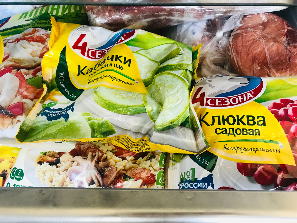 В последнее время я стала посматривать на различные замороженные блюда в магазинах и конечно мое внимание привлекли яркие пакеты «4 сезона». Не помню уже, какое блюдо я попробовала первым, но с тех пор эти пакеты с различными блюдами всегда лежат у меня в морозилке Это очень удобно. Ведь каждое блюдо готовится всего 10-12 минут. Выбор огромный. Это и уже готовые блюда, которые достаточно лишь только разогреть на сковороде или в микроволновке Различные ягоды для пирогов, компотов и для чего ваша фантазия пожелает Есть замороженные овощи для гарниров, например Кстати, о составе можно не беспокоится. В этих блюда нет никаких консервантов, Е-шек и других вредностей. Только лишь полезные ингредиенты! Вот так аппетитн