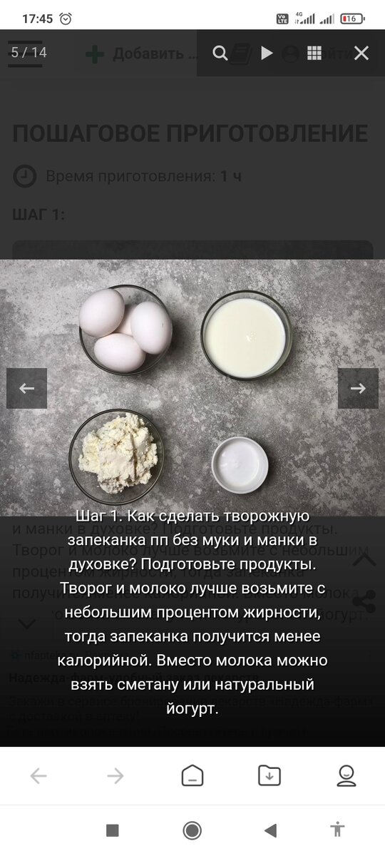 Могла быть запеканка ПП, но если бы не то, что мои родители ездили к бабушке в деревню и привезли мне молоко и творог. У меня был творог деревенский 400 гр, молоко деревенское 200 мл и 2 яйца. Белки отделить от желтков и белки убрать в холодильник. Остальные ингредиенты смешать с желтками, я это делала миксером, насадки крючки, а в рецепте блендером. Далее достать белки и взбивать миксером до густоты не менее 10 минут. Потом осторожно лопаточкой переложить белки в творожную массу, перемешать и выложить на сковороду или в любую форму для запекания. И вот такой кусок удалось сфоткать только.