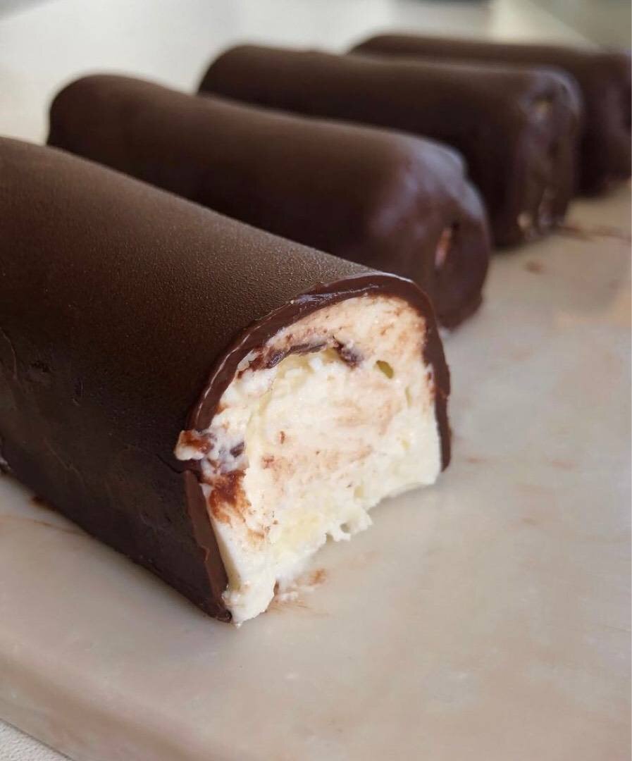 Из инстаграма @anny_meals Ингредиенты: творога 5-9%, сливочного масла, сахарозаменителя, горького шоколада, растительного масла Способ приготовления: Пробиваем блендером творог, масло и сахарозаменитель. Распределяем массу по силиконовым формочкам-брусочкам (я покупала в леонардо). Убираем в морозилку на 1-2 часа. Когда творожная масса застыла, делаем глазурь. Шоколад ломаем на кусочки, добавляем растительное масло и растапливаем на водяной бане или в микроволновке импульсами по 10-15 секунд, каждый раз перемешивая. Переливаем глазурь в высокий стакан, насаживаем сырок на шпажку или нож и обмакиваем в глазурь. Держим пару секунд, достаём сырок и даём стечь излишкам глазури. Ждём пока глазурь застынет (20-30 секунд). Храним в холодильнике и съедаем в ближайшие пару дней.