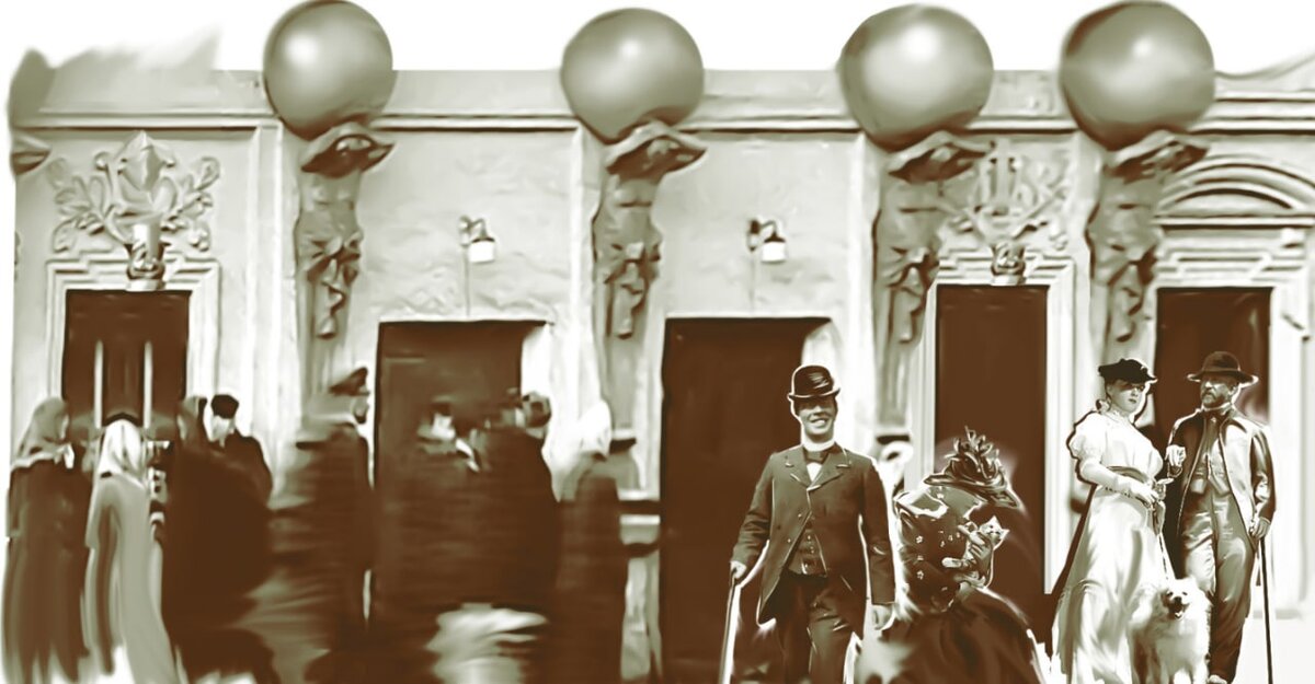 Хотелось рассказать историю, отразить наследие города, преемственность поколений, показать, что горожане тогда и сегодня не такие уж и разные. Зафиксировать уникальность утраченного духа этого места. На фоне фасада “Гиганта” мы видим прохожих, которые куда-то спешат, их след размывается в пространстве. Мужчина только что вышел с сеанса и с восхищением снимает шляпу перед удивительным зрелищем и наблюдателем. Дальше мы видим забавную сцену: женщина пытается спрятать напуганного котёнка, который озирается на маленькую собачку, которую держит на поводке прекрасная пара. Мальчишки скопились рядом с кассой и удивлённо, потирая ладони, наблюдают за тем, как взрослые покупают билет