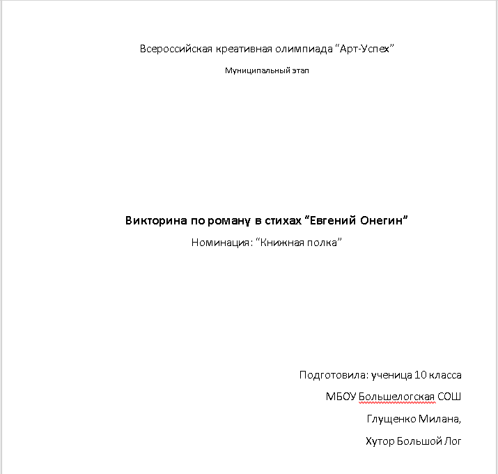 Интерактивная викторина по роману в стихах "Евгений Онегин". Номинация: "Книжная полка".