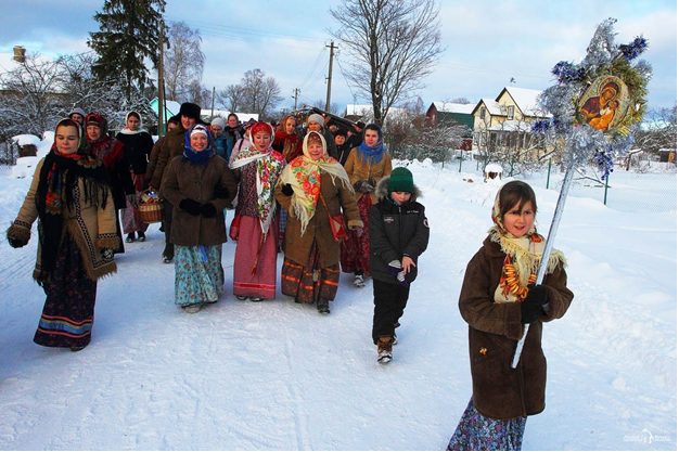 Широко был распространен обычай в крещенский вечер рисовать мелком или копотью свечей кресты на окнах и дверях, чтобы черти не поселились в доме. Обычно это действо совершал глава семьи – отец, его сопровождал кто-нибудь из членов семьи. Все были без шапок, с хлебом-солью в руках.