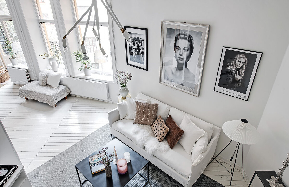 Маленькая скандинавская квартира со спальней на антресоли