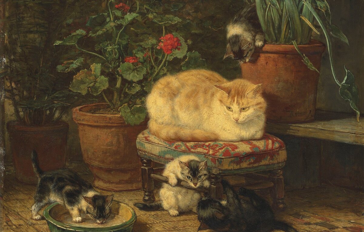 Легко ли нарисовать котика? Судя потому, как их изображали во время «страдающего средневековья», сложно. Но для монахов, которые обычно создавали все эти иллюстрации, инфернальные твари вместо усатых-полосатых простительны. Однако и на картинах некоторых именитых живописцев котофеи выглядят, прямо скажем, не очень. Художница Генриетта Ронер-Книпп рисовала котиков 30 лет. Правда, и другие питомцы в ее творчестве присутствовали. В России оно не так широко известно, а вот в родной Голландии и в Бельгии, где она работала, ее картины очень любят. Генриетта родилась в 1821 году в Амстердаме в семье художника Йозефа Августа Книпа. Более того, художником был и ее дед Николай Фредерик Книп, и четверо из пяти его детей. К сожалению, успех династии не сопутствовал. В 1795 году дед полностью ослеп, и вся его большая семья переехала в Париж. В 1813 году отец Генриетты вернулся на родину, но успеха не добился. В 1823 году беспокойный Йозеф вместе с женой и двумя детьми вернулся в Париж. Из-за коче