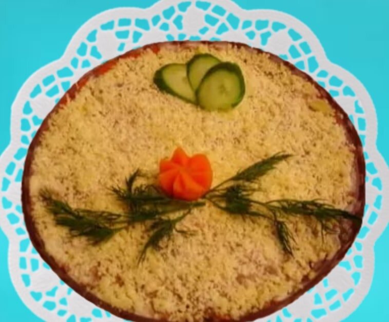 Всем привет! Хочу познакомить вас с вкусным и сытным рецептом салата «Большой театр». Салат известный достаточно давно. Он также идеально подходит для праздничного стола. Готовится из любого мяса по вашему вкусу. Некоторые хозяйки в качестве основы используют куриное филе, свинину. Почувствуйте себя творческим работником «Большого театра» и главное, не забывайте про импровизацию. В данном рецепте представлена говядина. Ингредиенты: · 7 вареных яиц · 2 луковицы · 150 гр. твердого сыра · 100 гр. измельченных ядер грецкого ореха · 300 – 400 гр. вареного мяса (говядина) · 150 гр. сливочного масла · 2 вареные свеклы (средних размеров) · 250 – 400 гр. майонеза · Соль – по вкусу · Зелень – для украшения · 1 огурец – для украшения · 1 морковь – для украшения Приготовление: 8. Для украшения салата: · Берем веточку свежего укропа промываем, обсушиваем и выкладываем чуть ниже середины салата. · Морковь хорошо вымыть, залить водой (чтобы вода покрыла её) и ставим на огонь. Отвариваем до