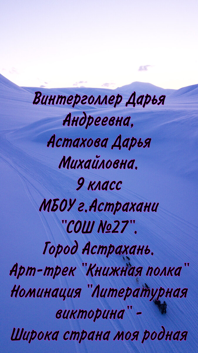 Приглашаем вас повеселиться, отвечая на вопросы по мотивам русских народных сказок. Винтерголлер Дарья Андреевна, Астахова Дарья Михайловна. 9 класс. МБОУ г. Астрахани "СОШ № 27". Астраханская область, город Астрахань. Арт-трек "Книжная полка". Номинация "Литературная викторина". Сервис викторины MyQuiz Внимание! Игра запустится 11 мая 2022 года в 18 часов по астраханскому времени. Код для присоединения к викторине: 310755