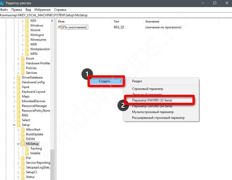 - Перейдите в раздел HKEY_LOCAL_machinesystemSetupMoSetup.