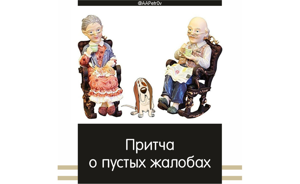Однажды человек шел мимо некоего дома и увидел старушку в кресле-качалке, рядом с ней качался в кресле старичок, читающий газету, а между ними на крыльце лежала собака и скулила, как будто бы от боли. Проходя мимо, человек про себя удивился, почему же скулит собака.